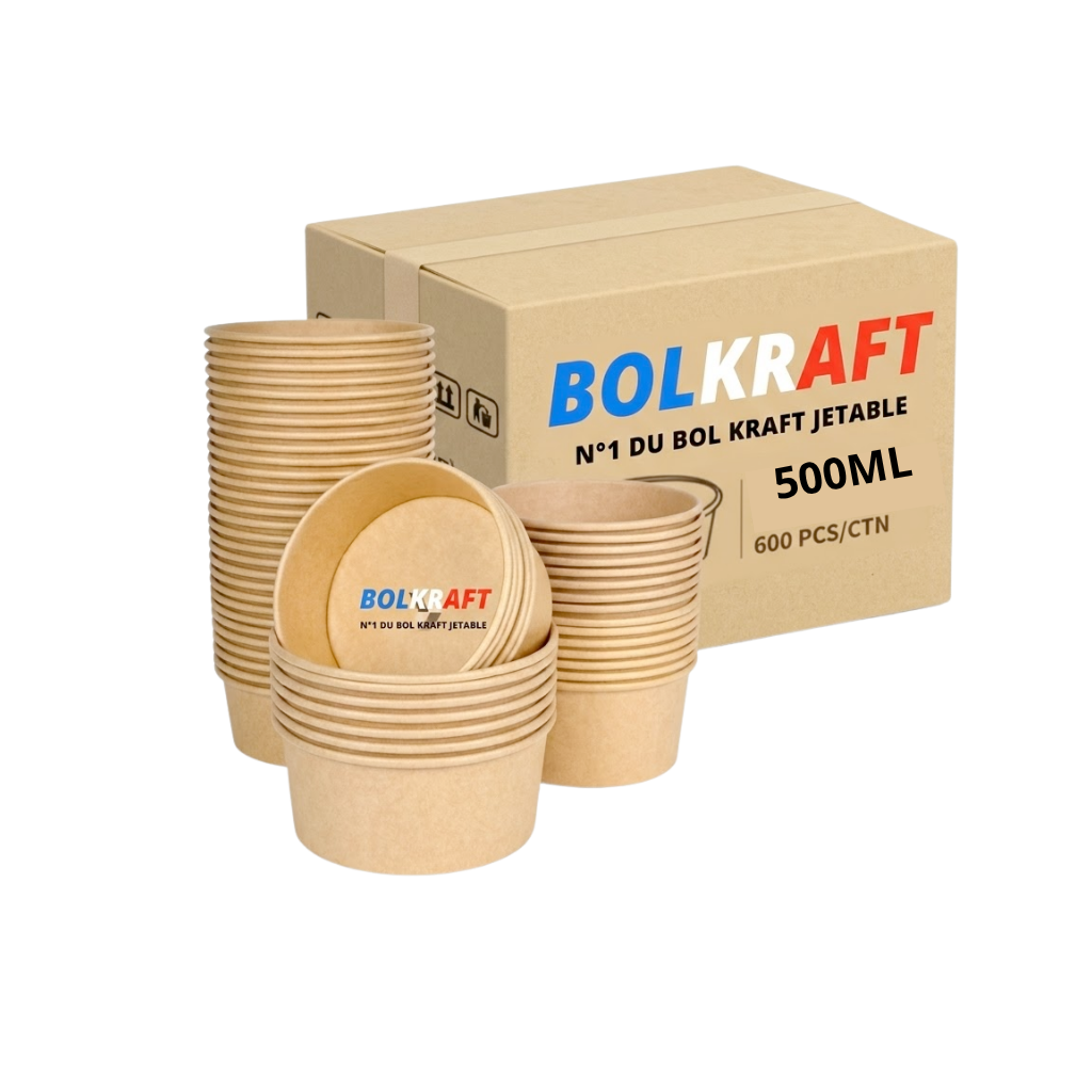 Le bol kraft brun 500 ml est conçu pour les professionnels de la restauration, de la vente à emporter et du snacking.